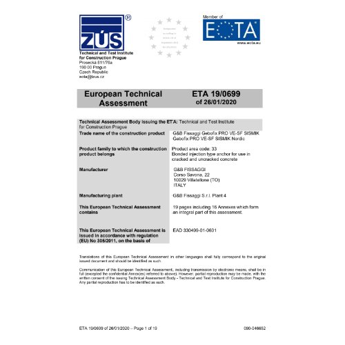 - Zulassung: ETA - 16/0919,ETA - 19/0699,