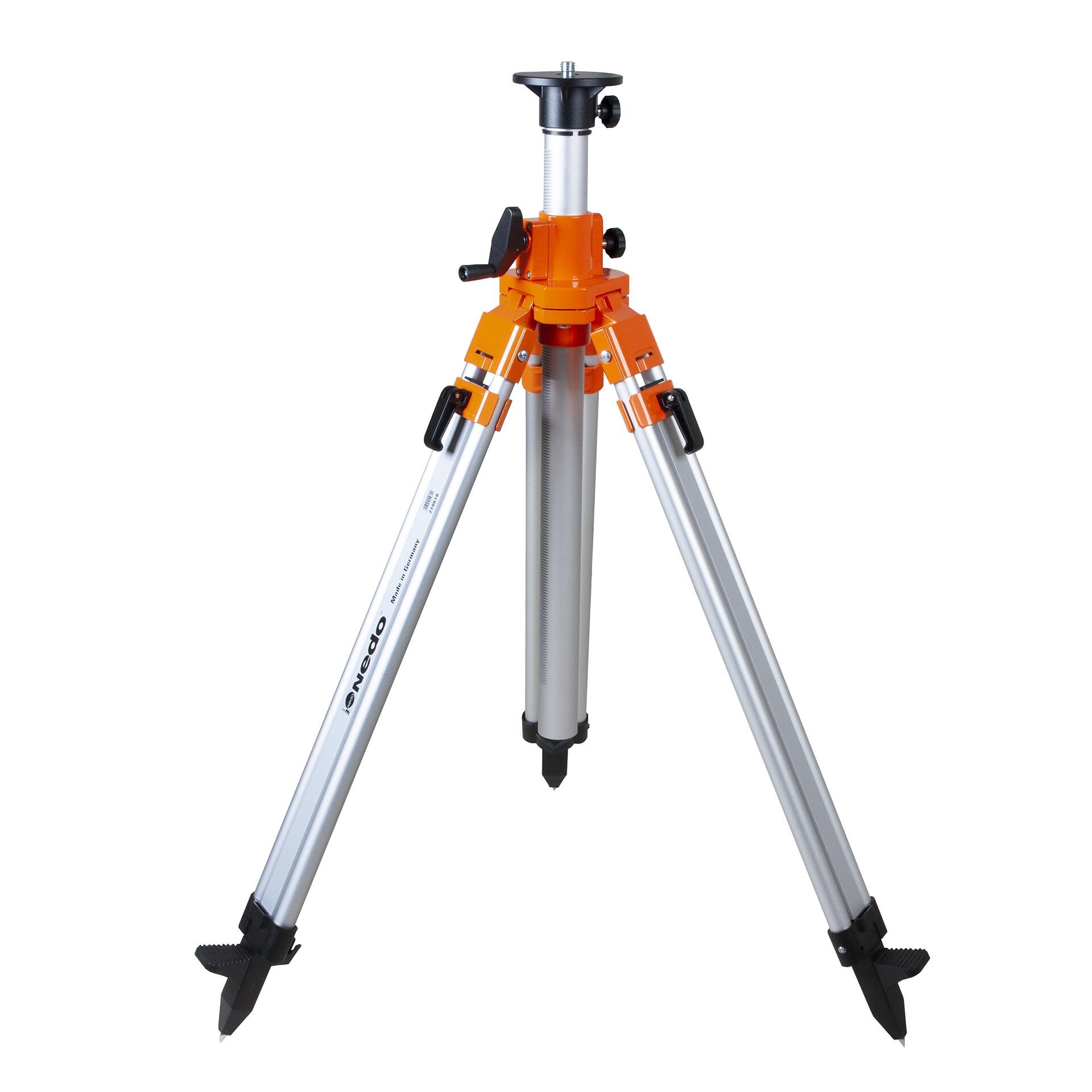 Das mittelschwere Kurbelstativ mit 5/8"-Gewinde und Ø 110 mm Stativteller überzeugt durch präzisen Kurbelhub, Schnellklemmung und Libelle. Höhenverstellbar von 0,76 bis 2,02 m – ideal für Rotationslaser.