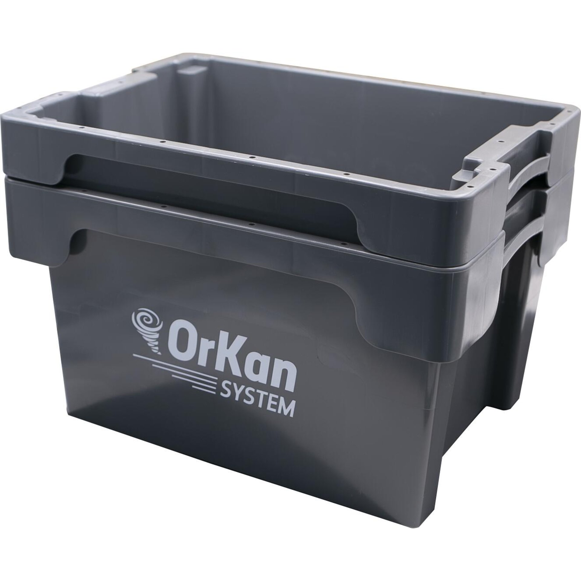 Die OrKan-System-Drehstapelbehälter sind ideal für leichte industrielle Einsätze. Stapelbar mit und ohne Deckel, bieten sie hohe Stabilität und sparen bis zu 65 % Volumen beim Nesten. Hergestellt aus lebensmittelechtem HDPE, sind sie schlagfest, säure- und laugebeständig sowie kälte- und hitzebeständig. Glatte Flächen erleichtern die Reinigung. Perfekt für manuelles Handling und automatische Fördertechnik.