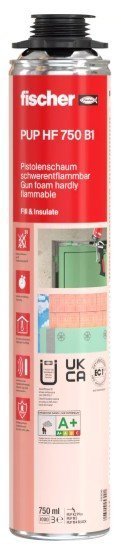 - Der Pistolenschaum ist gemäß B1-Prüfung schwerentflammbar und darf daher zwischen massiven, mineralischen oder metallischen Baustoffen eingesetzt werden