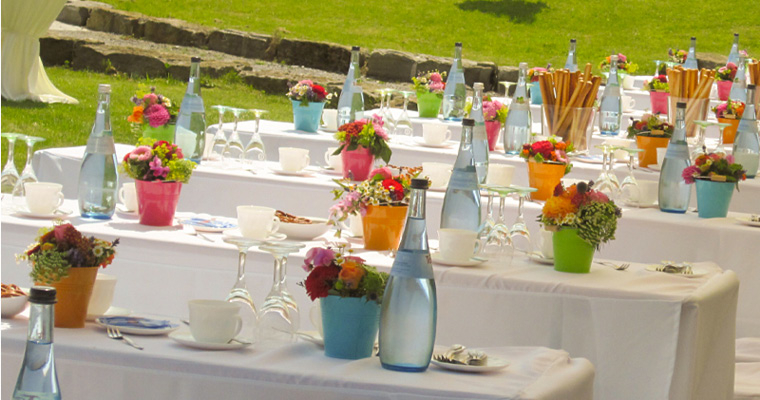 Die professionell ausgestatte Küche bietet vom Teller bis zum Wasserkocher alles. Die Küche enthält neben dem klassischen Kochfeld noch zusätzlich einen mobilen Tresen, den man als Präsentationstresen für Getränke, Kuchen und vieles mehr einsetzen kann.